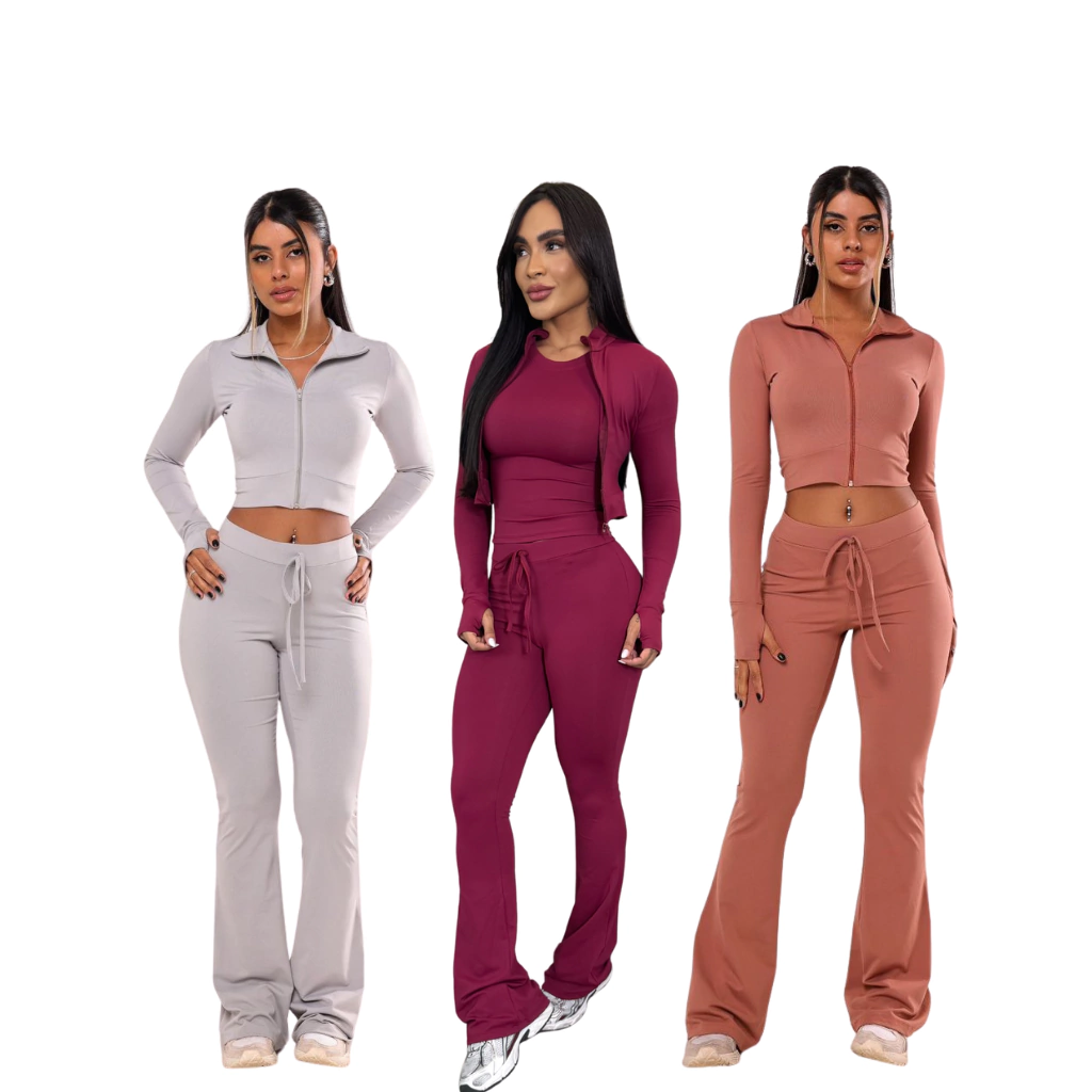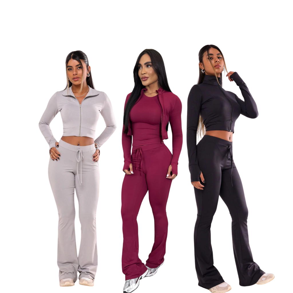 Descubra a calça flare feita em tecido poliamida de alta qualidade que valoriza seu corpo com um caimento perfeito. O tamanho único veste até o 42, ajustando-se de forma confortável e sofisticada.